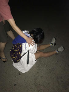 そして立たせて歩かせたが次の瞬間・・・嘔吐。